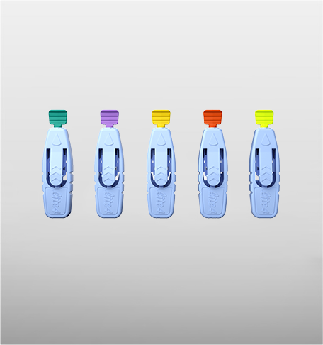 筒形采血筆OneStep型一步裝針,無需卸帽。 筒形采血筆OneStep型專配SoftSense型采血針,不通配市面上其他款式采血針。